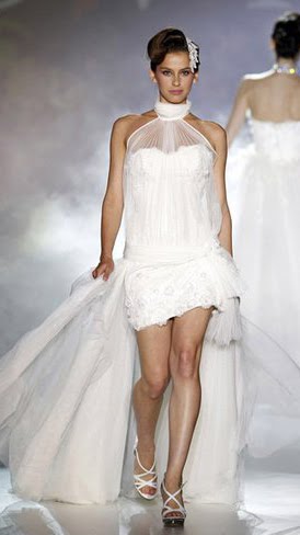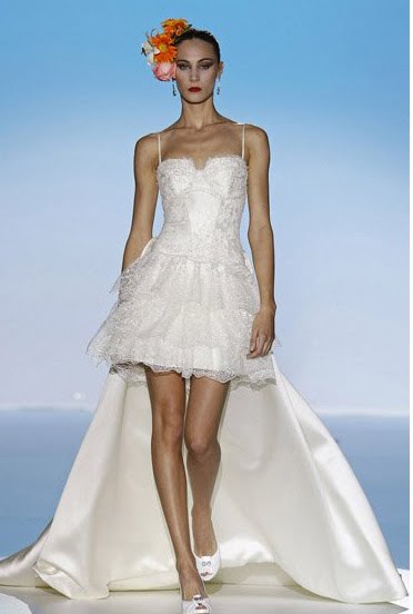FALDAS EN 2 NIVELES: Vestidos cortos, con o sin cola. De nuevo gasa y encajes.