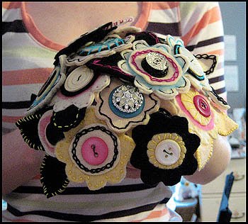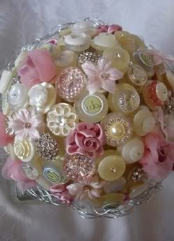 Entretenido per muy original y vistoso. Todo tipo de botones, en colores y formas unidos para formar un hermoso ramo de novia.